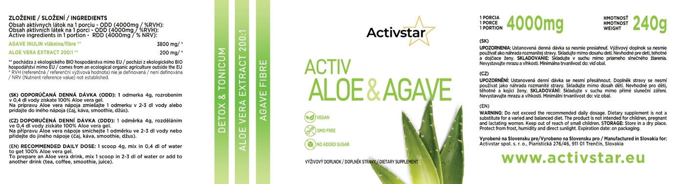 Aloe vera Pulver mit Agave kann als Nahrungsergänzungsmittel in Shakes, Smoothies oder Getränke verwendet werden.