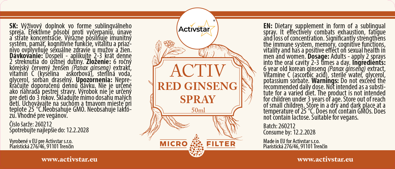 Activ Ginseng Spray enthält 6 Jahre alten koreanischen roten Ginseng (Panax ginseng red), der für seine außergewöhnliche Wirkung auf den Körper bekannt ist.