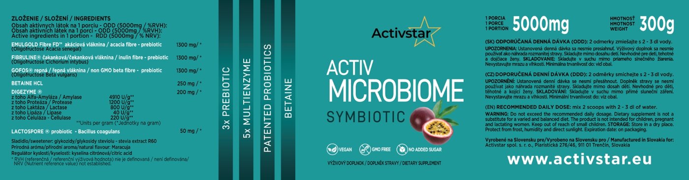 ACTIV MICROBIOM hat auch an Ihren Komfort gedacht: Es enthält Betain HCl, das zur richtigen Magensäure beiträgt, und den natürlichen Süßstoff Stevia für einen großartigen Geschmack ohne Zuckerzusatz. Mit seinem erfrischenden Passionsfruchtgeschmack wird die Einnahme dieses Nahrungsergänzungsmittels zu einem angenehmen Teil Ihres Tages.