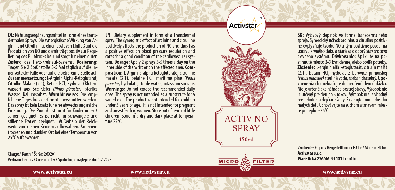 Geben Sie Ihrem Körper einen Schub, den Sie jeden Tag schätzen werden. Activ NO Spray ist ein transdermales Spray, das L-Arginin und L-Citrullin enthält - Aminosäuren, die an der Produktion von Stickstoffmonoxid (NO) beteiligt sind.