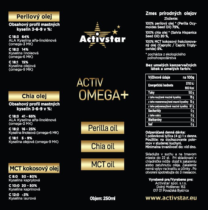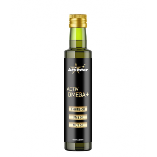 ACTIV OMEGA+ ist eine Ölmischung mit einem in der Pflanzenwelt unerreichten Omega-3-Gehalt, der alle anderen Öle übertrifft. Das aus den schwarzen Samen von Perilla frutescens gewonnene pflanzliche Öl liefert 65% ALA (Alpha-Linolensäure, eine Omega-3-Fettsäure) und etwa 12% Omega-6-Fettsäuren.