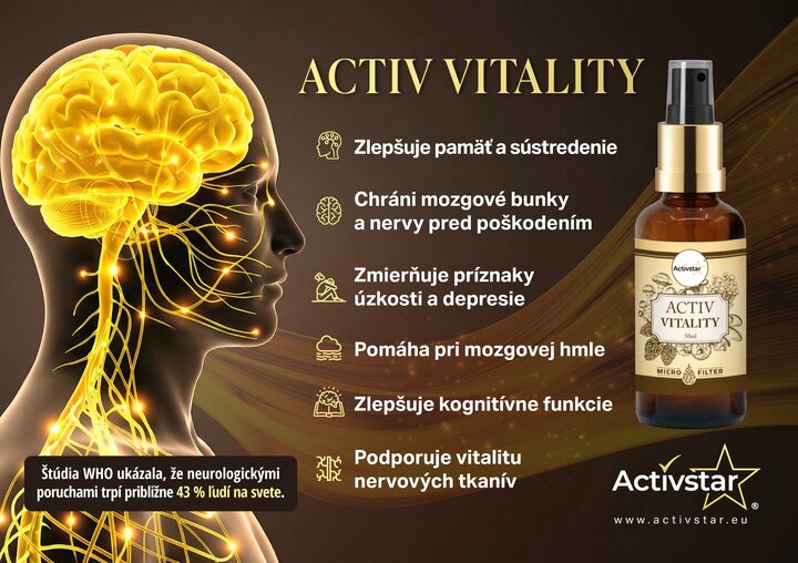 ACTIV VITALITY ist ein Nahrungsergänzungsmittel in Form eines Sublingualsprays, das die Kraft von Heilpilzen mit einer synergetischen Wirkung verbindet. Es unterstützt die kognitive Funktion, die Konzentration, das Gedächtnis und die geistige Leistungsfähigkeit. Es ist ideal für Studenten, Führungskräfte, Senioren und alle, die ihre geistige Vitalität und Belastbarkeit steigern wollen.