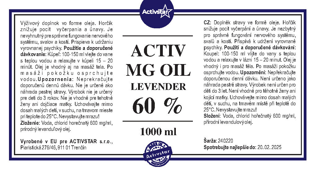 ACTIV MG OIL 60% LEVENDER enthält ätherisches Öl, das durch Wasserdampfdestillation aus Lavendelblüten gewonnen wird.